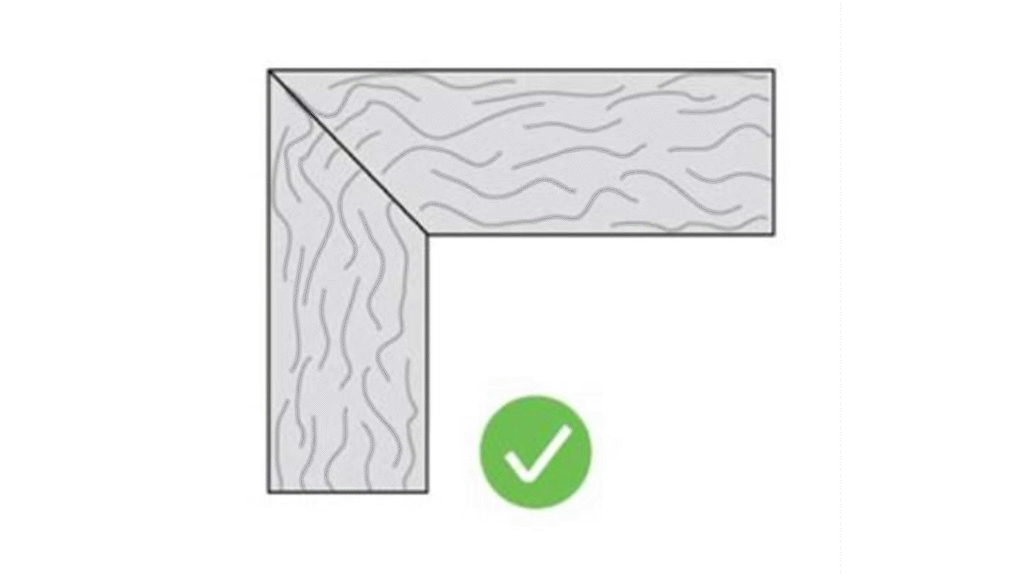 Les motifs et les veines ne correspondent pas aux joints ou aux changements de direction de la dalle
