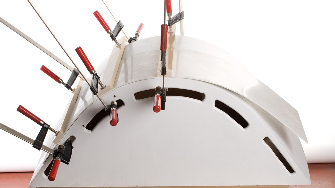 3. Clamp the formed piece to the surface and allow the glue to dry.